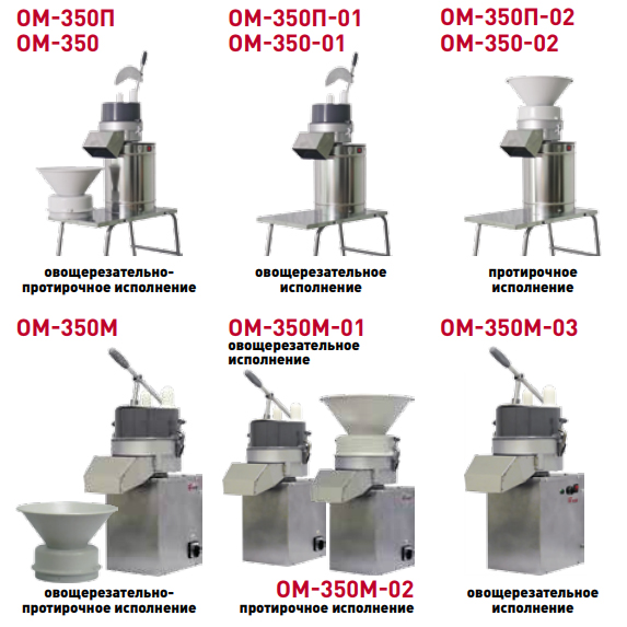 Овощерезательно-протирочная машина ТОРГМАШ ОМ-350М используется на предприятиях общественного питания и торговли для нарезания сырых и вареных овощей, шинковки капусты и протирания овощей, фруктов и творога. Корпус выполнен из стали с покрытием порошковой краской, ножи и диски - из нержавеющей стали.