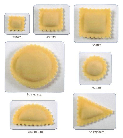 Аппарат для изготовления равиоли ITALGI PR25 используется на предприятиях общественного питания и торговли. Модель оснащена сменными пресс-формами, замена которых занимает несколько секунд, позволяющими изготовить из двойного слоя теста равиоли различных форматов. Конструкция выполнена из нержавеющей стали. Присоединяется к комбинированной машине для пасты Modula.