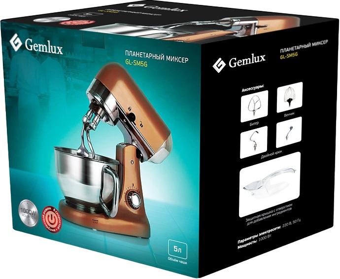 Планетарный миксер Gemlux GL-SM5G используется на предприятиях общественного питания, торговли, пищевых производствах, квартирах и частных домах для замеса различного вида теста, а также для приготовления пюре, майонеза, различных соусов, взбитых сливок и перемешивания готового фарша. Модель оснащена откидной головкой, съемной дежой, защитной крышкой, цельнометаллическим приводом и загрузочным желобом. Материал корпуса - окрашенный металл кремового цвета, материал дежи - высококачественная нержавеющая сталь.