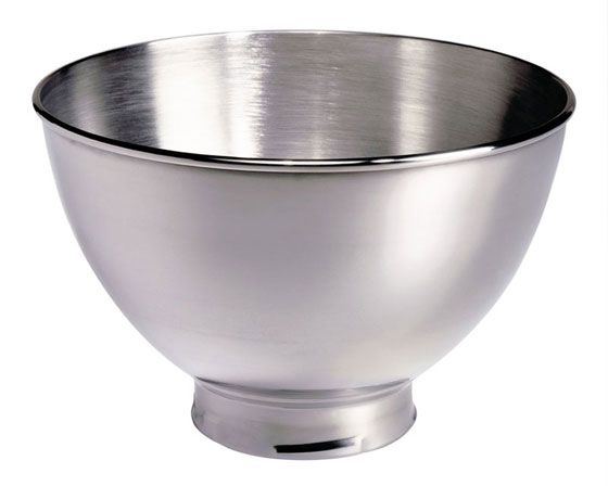 В комплекте венчик, алюминиевая лопатка, алюминиевый крюк, лопатка с гибким силиконовым ребром, чаша 4.83 л, чаша без ручки 3 л и защитный обод.