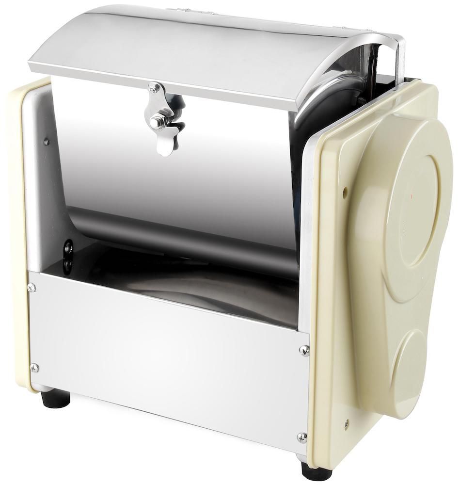 Корпус изготовлен из окрашенной стали, а опрокидываемая дежа и крышка (для предотвращения распыла муки) — из нержавеющей стали.
