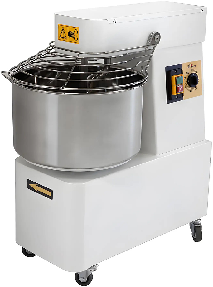Спиральный тестомесITPIZZA SK-40-2S предназначен для замешивания теста с различной основой и консистенцией для выпечки хлебобулочных или кондитерских изделий на предприятиях общественного питания и торговли. Модель оснащена малошумной системой трансмиссии и отсекателем. Корпус выполнен из нержавеющей стали, окрашенной в белый цвет, дежа, спираль и защитная решетка - из нержавеющей стали.
