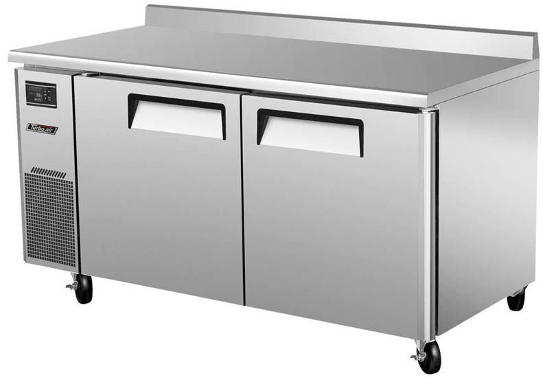 Холодильный стол Turbo air KWR15-2 предназначен для раскатки теста, обработки, охлаждения и кратковременного хранения продуктов и напитков на предприятиях общественного питания и торговли. Корпус выполнен из нержавеющей стали (гальванизированная сталь на оборотной стороне и внизу) с применением пожаробезопасных стенок толщиной 60 мм, уплотнения - из АБС-пластика (акрилонитрилбутадиенстирола), не пропускающего конденсата, пол - из нержавеющей стали с алюминиевыми вставками по бокам и сзади оборудования, регулируемые полки - из толстой стальной проволоки с виниловым покрытием.