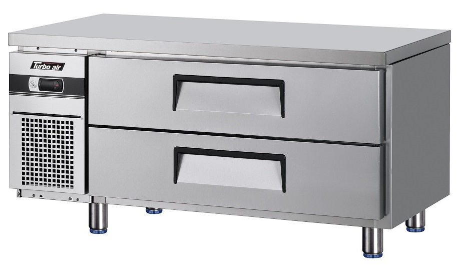 Холодильный стол Turbo air KUC12-2 предназначен для хранения овощей, полуфабрикатов из мяса и рыбы, а так же других скоропортящихся продуктов на предприятиях общественного предприятия и торговли. Сверхпрочная столешница шеф-базы изготовлена из цельного куска нержавеющей стали для повышения прочности. За счет использования специального слоя теплоизоляции на столешницу можно устанавливать любое тепловое оборудование. Столешницы этой модели выдерживают до 358 кг нагрузки. Шеф-база Turbo Air спроектирована с увеличенной и более сбалансированной (CFC free) системой охлаждения. Она включает в себя более мощный испаритель и конденсатор, обладающие большой эффективностью и позволяющие добиться быстрого охлаждения продуктов.