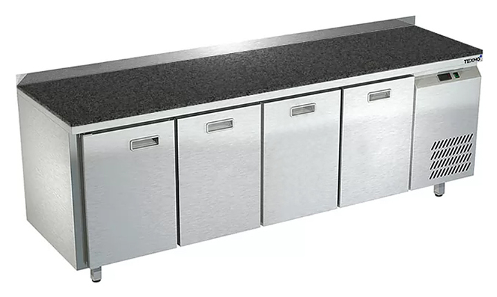 Холодильный стол Техно-ТТ СПБ/О-422/13-2206 предназначается для раскатки теста, обработки, охлаждения и кратковременного хранения продуктов и напитков на предприятиях общественного питания, торговли и пищевых производствах. Секции оснащены направляющими и ящиками с доводчиками. Материал корпуса - нержавеющая сталь AISI 430, материал столешницы - гранит (толщина 20 мм), материал задней панели и дна - оцинкованная сталь.