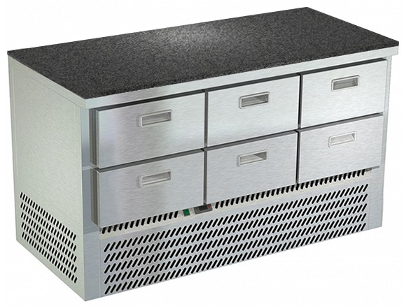 Холодильный стол Техно-ТТ СПН/О-323/06-1407 предназначается для раскатки теста, обработки, охлаждения и кратковременного хранения продуктов и напитков на предприятиях общественного питания, торговли и пищевых производствах. Секции оснащены направляющими и ящиками с доводчиками. Материал корпуса - нержавеющая сталь AISI 430, материал столешницы - гранит (толщина 20 мм), материал задней панели и дна - оцинкованная сталь.