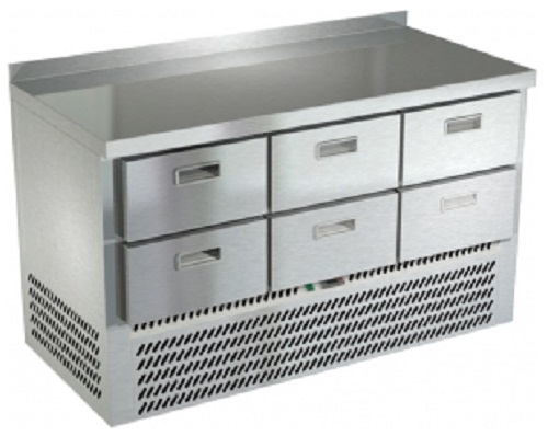 Холодильный стол Техно-ТТ СПН/О-223/06-1406 предназначается для раскатки теста, обработки, охлаждения и кратковременного хранения продуктов и напитков на предприятиях общественного питания, торговли и пищевых производствах. Секции оснащены направляющими и ящиками с доводчиками. Материал корпуса и столешницы - нержавеющая сталь AISI 430, материал задней панели и дна - оцинкованная сталь.