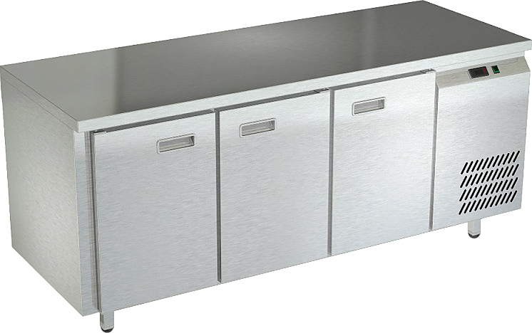 Холодильный стол Техно-ТТ СПБ/Т-121/40-2207 предназначается для раскатки теста, обработки продуктов и ингредиентов, заморозки и хранения продукции, а также для размещения теплового оборудования на предприятиях общественного питания, торговли и пищевых производствах. Двери оснащены доводчиками. Материал корпуса и столешницы - нержавеющая сталь AISI 430, материал дна и задней панели - оцинкованная сталь.