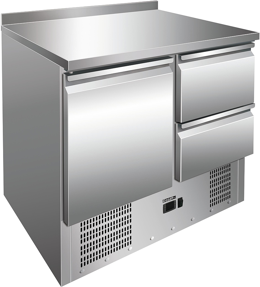 Холодильный стол Cooleq S901-2D используется на предприятиях общественного питания, торговли и пищевых производствах для охлаждения и кратковременного хранения различных блюд, напитков и продуктов, а также для раскатки теста и обработки ингредиентов. Модель оснащена электронным управлением, холодильной камерой, полкой и направляющими для GN 1/1. Материал корпуса и столешницы - высококачественная нержавеющая сталь.