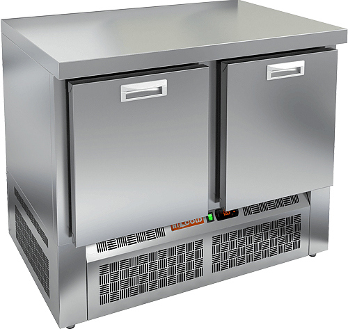 Холодильный стол HICOLD GNE 11/TN BOX О предназначен для охлаждения и временного хранения продуктов питания, а также для обработки ингредиентов и приготовления блюд на предприятиях общественного питания, торговли и пищевых производствах. Модель оснащена электронным управлением, автоматической оттайкой, автоматичким доводчиком дверей, фиксатором открытого положения и регулируемыми ножками. Материал корпуса и столешницы - высококачественная нержавеющая сталь.