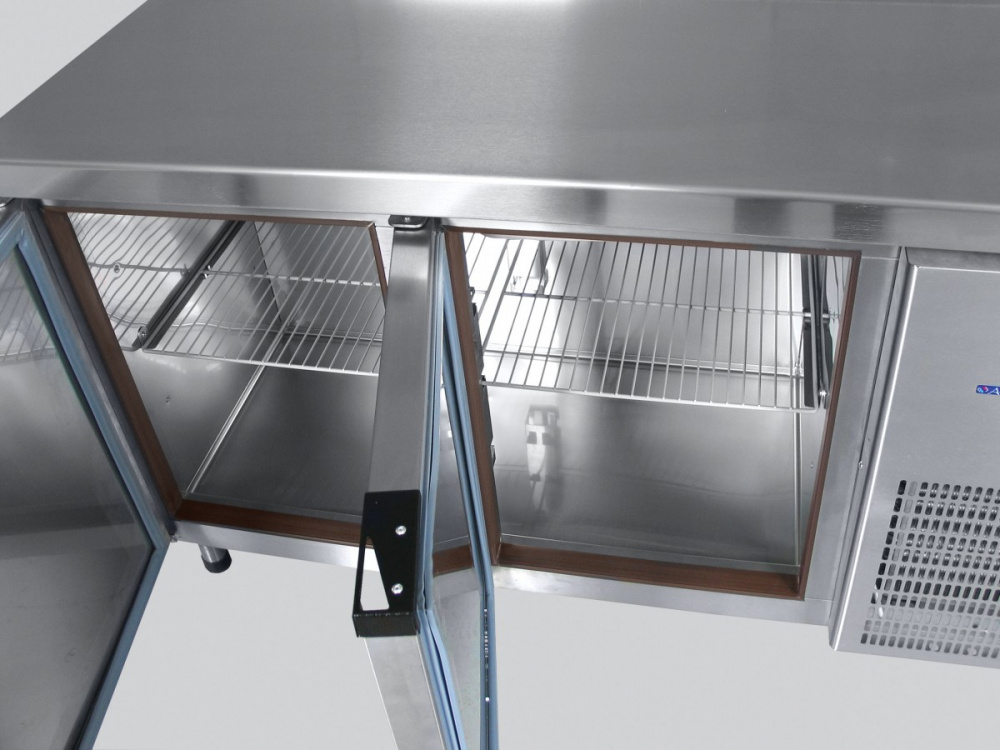 Конструкция выполнена из высококачественной нержавеющей стали. Изоляция стенок и полости стола выполнена методом заливки пенополиуретаном.