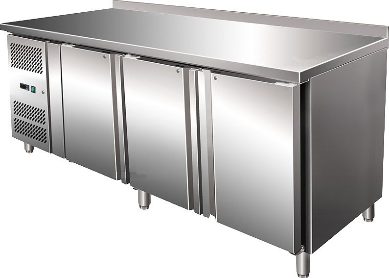 Холодильный стол Koreco TG19L3BA предназначен для раскатки теста и обработки ингредиентов для приготовления бдюд, охлаждения и кратковременного хранения скоропортящихся продуктов и напитков на предприятиях общественного питания и торговли. Корпус, закладные и направляющие под полки выполнены из нержавеющей стали AISI 304.