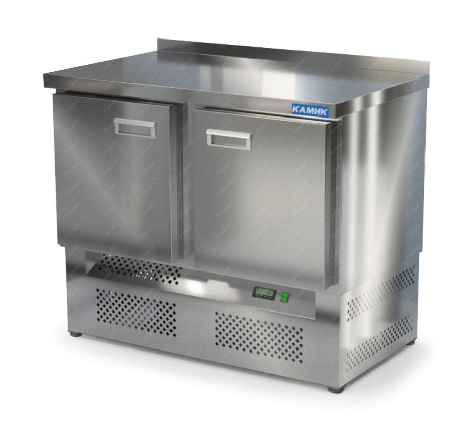 Холодильный стол КАМИК СО-20108Н используется на предприятиях общественного питания и торговли для охлаждения и хранения продуктов, напитков и готовых блюд. Конструкция разделена на секции, каждая из которых оборудована сетчатой полкой и парой направляющих. Корпус выполнен из нержавеющей стали AISI 430 толщиной 1 мм, столешница - из нержавеющей стали AISI 304 толщиной 1,5 мм.