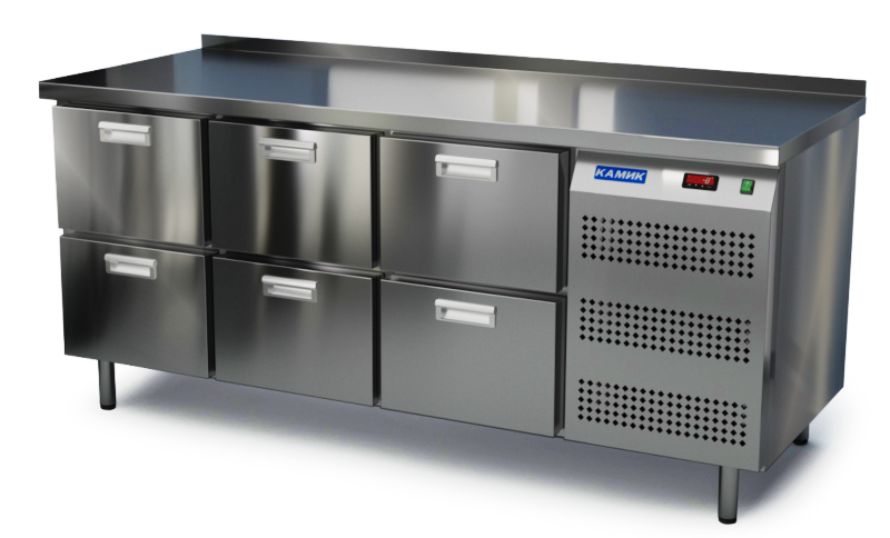 Холодильный стол КАМИК СО-Т-061857 используется на предприятиях общественного питания и торговли для охлаждения и хранения продуктов, напитков и готовых блюд, а также для установки теплового оборудования на него. Конструкция разделена на секции, каждая из которых оборудована сетчатой полкой и парой направляющих. Корпус выполнен из нержавеющей стали.