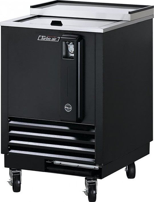 Барный холодильник Turbo air TBC-24SB предназначен для охлаждения и кратковременного хранения напитков на предприятиях общественного питания и торговли. Корпус выполнен из оцинкованной стали, покрытой износостойким черным винилом, с применением полиуретановой теплоизоляции высокой плотности и уплотнения из теплоэффективного АБС-пластика (акрилонитрилбутадиенстирола), не пропускающего конденсата, весь внутренний периметр и дверные направляющие - из нержавеющей стали, регулируемые полки - из проволоки толщиной 10 мм с виниловым покрытием.