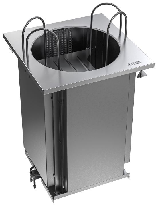 Модуль для подогрева тарелок ATESY Регата МПТ-440-940-02 используется на предприятиях общественного питания и торговли в составе линии раздачи Регата для хранения и поддержания в теплом состоянии тарелок. Тарелки укладываются на платформу, поддерживаемую с помощью пружинного механизма. Подогрев тарелок происходит с помощью ТЭНа. Ограничитель диаметра стопки тарелок регулируется. Сборная бескаркасная конструкция. Материал столешницы - нержавеющая сталь, материал ограничителей - нержавеющий пруток.