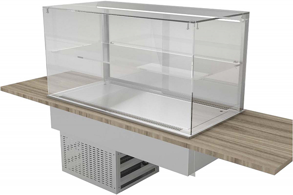 Витрина охлаждаемая Gastrolux ВСВ-127/CUBE используется для демонстрации, охлаждения и поддержания в прохладном состоянии различных блюд на предприятиях общественного питания, торговли и пищевых производствах. Витрина оснащена стеклянной промежуточной полкой, поверхностью-днищем для выкладки, 2 дверцами-купе со стороны оператора и подсветкой каждого яруса. Купол и полка выполнены из стекла, дверцы-купе - из оргстекла, корпус агрегатной части - из нержавеющей стали AISI 430.