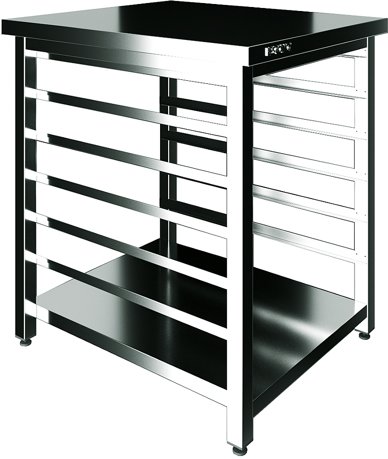 Подставка Restoinox ППР-6.6/8/8.5 предназначается для установки подовой печи UNOX XEBDC-02EU-D на предприятиях общественного питания, торговли и пищевых производствах. Опоры ножек регулируются по высоте, подставка оснащена полкой. Материал разборного каркаса - труба из нержавеющей стали AISI 430 (40x40 мм), материал усиленной столешницы, полки и направляющих - нержавеющая сталь AISI 430.