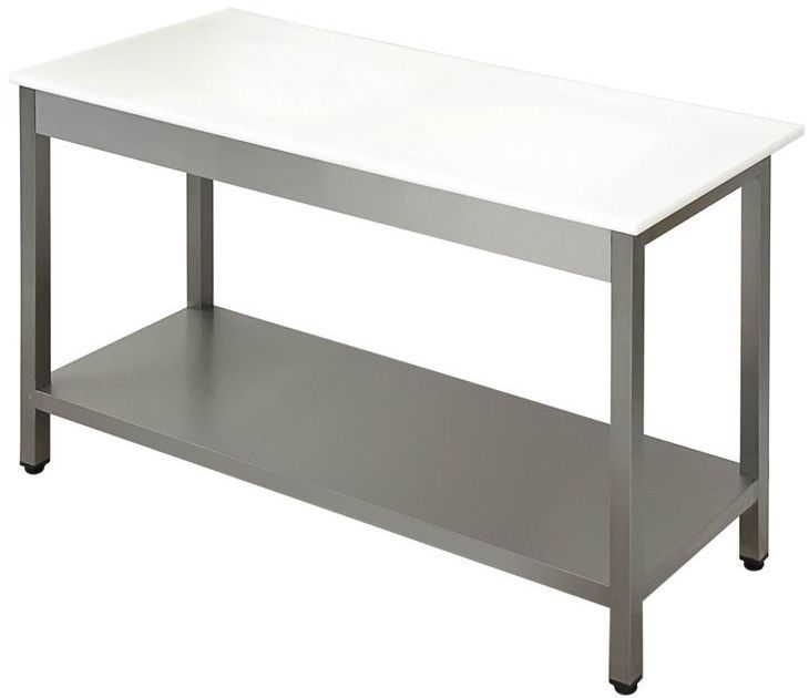 Стол разделочный Simeco СРП1406П используется на предприятиях общественного питания и торговли для разделки и приготовления различных блюд. Модель имеет сплошную нижнюю полку и фартук 100 мм по фасаду. Каркас стола выполнен из нержавеющей стали AISI 430, столешница - полипропилен толщиной 20мм. Ножки - труба 40х40 мм.