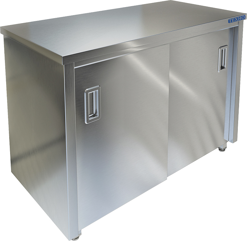 Производственный стол Техно-ТТ СПС-124/900 предназначен для разделки и обработки пищевых продуктов, а также для расстановки и хранения посуды и кухонного инвентаря на предприятиях общественного питания и торговли. Модель оснащена 2 дверями-купе и регулируемыми по высоте ножками, что позволяет компенсировать неровности пола. Сварной корпус выполнен из нержавеющей стали AISI 304, столешница - из нержавеющей стали AISI 304 и ЛДСП, полка - из нержавеющей стали, задняя стенка - из оцинкованной стали.