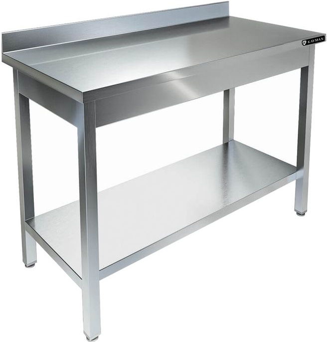 Производственный стол KAYMAN СП-222/0806 используется на предприятиях общественного питания и торговли для раскатки теста и обработки ингредиентов для приготовления блюд, а также как дополнительное место для установки и хранения кухонных приборов, инвентаря и сухих продуктов. Каркас выполнен из нержавеющей трубы AISI 430 40х40 мм, столешница - из нержавеющей стали AISI 430 толщиной 0,8 мм, усилена листом ЛДСП толщиной 16 мм.