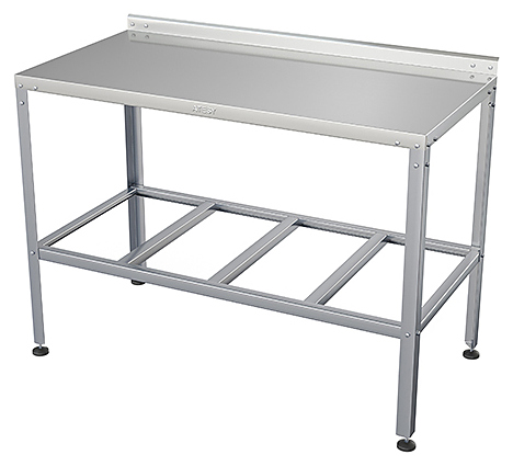 Производственный стол ATESY СР-Б-1-700.600-02 серии Бюджет используется на предприятиях общественного питания, торговли и пищевых производствах для раскатки теста, приготовления различных блюд и хранения кухонных принадлежностей. Материал рабочей поверхности – нержавеющая сталь AISI 430 усилена листом ЛДСП (толщина 16 мм), материал каркаса и решетчатой полки – оцинкованная сталь (уголок 40x40 мм толщиной 1.2 мм), конструкция - разборная.