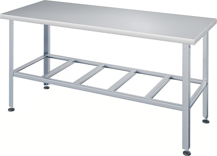 Производственный стол ATESY СР-С-1000.800-02-Н серии Стандарт используется на предприятиях общественного питания, торговли и пищевых производствах для раскатки теста, приготовления различных блюд и хранения кухонных принадлежностей. Материал рабочей поверхности – нержавеющая сталь AISI 430 усилена листом ЛДСП (толщина 16 мм), материал каркаса и решетчатой полки – нержавеющая сталь AISI 430 (уголок 40x40 мм), конструкция - разборная.