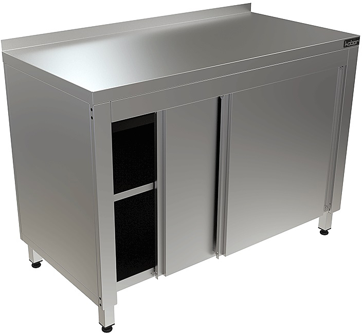 Стол производственный Кобор СТБ-100/70/К используется на предприятиях общественного питания, торговли и пищевых производствах для хранения кухонной утвари и обработки различных ингредиентов перед приготовлением. Материал каркаса - высококачественная нержавеющая сталь (труба 40х40 мм), материал столешницы - высококачественная нержавеющая сталь AISI 430, усиленная листом ЛДСП (толщина 16 мм).