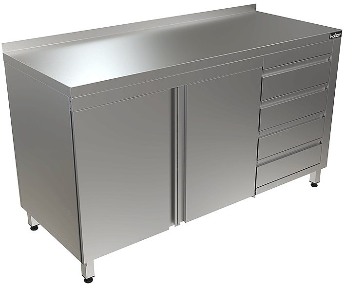 Стол производственный Кобор СТБ/1-120/60/Р используется на предприятиях общественного питания, торговли и пищевых производствах для хранения кухонной утвари и обработки различных ингредиентов перед приготовлением. Материал каркаса - высококачественная нержавеющая сталь (труба 40х40 мм), материал столешницы - высококачественная нержавеющая сталь AISI 430, усиленная листом ЛДСП (толщина 16 мм).