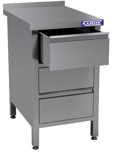 Стол производственный КАМИК СБЗЯ-4573 используется на предприятиях общественного питания, торговли и пищевых производствах для приготовления широкого спектра блюд и обработки ингредиентов. Стол оснащен бортом и ящиками. Материал изготовления - нержавеющая сталь AISI 430.