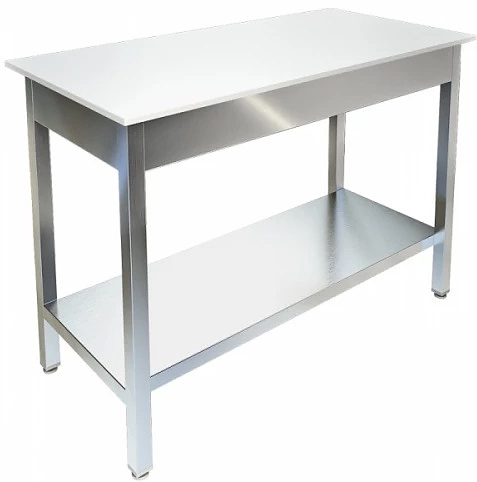 Производственный стол Техно-ТТ СП-433/1507 предназначен для раскатки теста и обработки ингредиентов для приготовления кондитерских и хлебобулочных изделий, а также для расстановки и хранения посуды и кухонного инвентаря на предприятиях общественного питания, торговли и пищевых производствах. Модель оснащена регулируемыми по высоте ножками, что позволяет компенсировать неровности пола. Материал разборного каркаса - труба (40x40 мм) из нержавеющей стали AISI 430, материал сплошной полки - нержавеющая сталь AISI 430, материал столешницы - полипропилен.