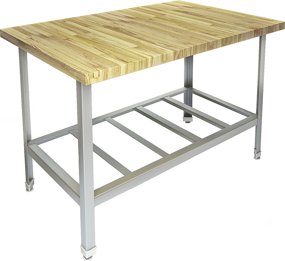 Кондитерский стол Техно-ТТ СП-345/1608 предназначен для раскатки теста и обработки ингредиентов для приготовления кондитерских и хлебобулочных изделий, а также для расстановки и хранения посуды и кухонного инвентаря на предприятиях общественного питания, торговли и пищевых производствах. Модель оснащена регулируемыми по высоте ножками, что позволяет компенсировать неровности пола. Материал разборного каркаса - уголок (40x40 мм) из нержавеющей стали AISI 304, материал полки-решетки - нержавеющая сталь AISI 430, материал столешницы - бук.
