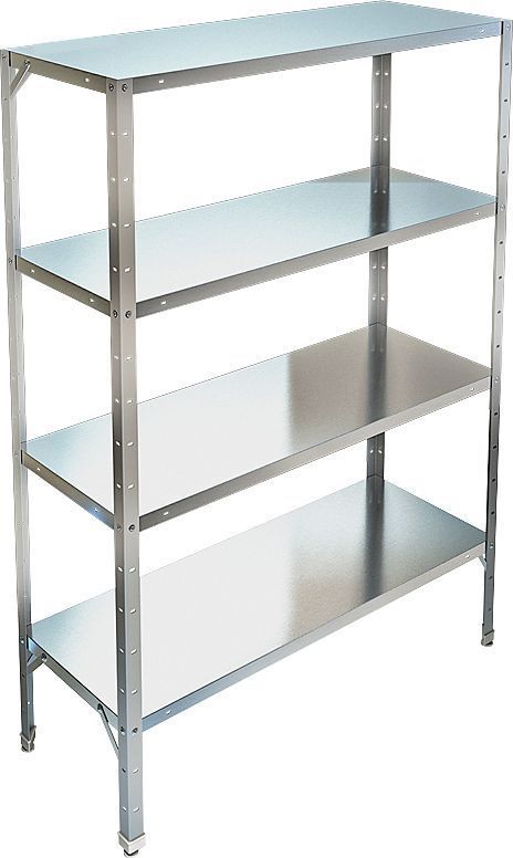 Кухонный стеллаж Техно-ТТ СТР-114/1204 используется на предприятиях общественного питания, торговли и пищевых производствах для хранения посуды, кухонного инвентаря и продуктов. В модели предусмотрены регулируемые ножки и полки. Тип каркаса - разборный, полки - сплошные. Материал каркаса - крашеный металл (уголок 40х40 мм толщиной 1.2 мм), материал полок - нержавеющая сталь AISI 304 (толщина 0.8 мм).