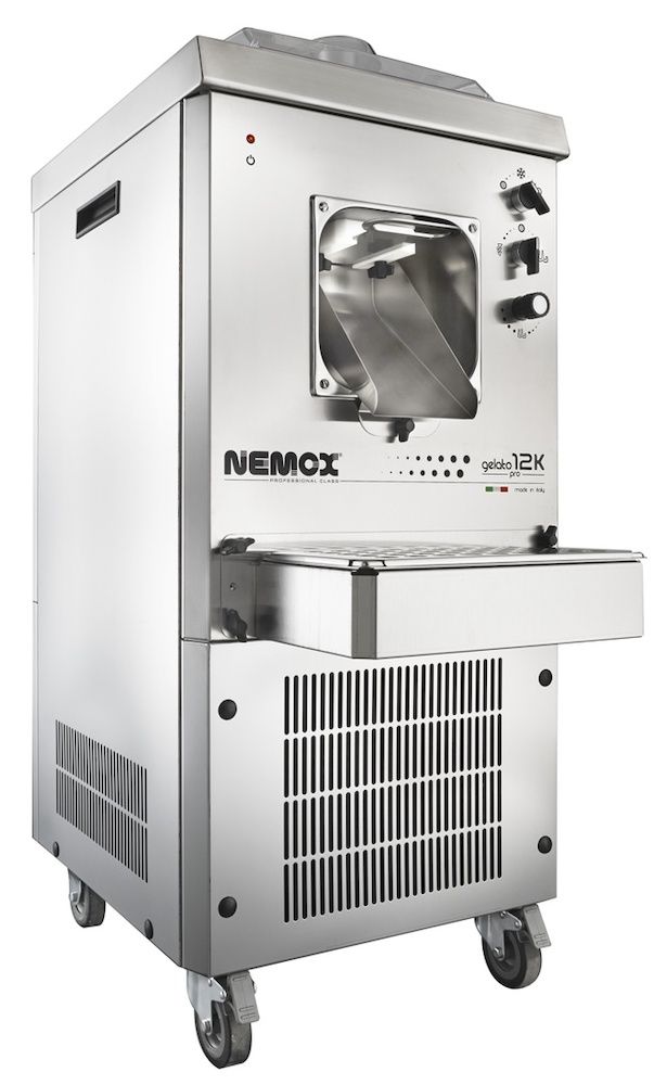 Фризер для мороженого Nemox Gelato 12K используется в барах, кафе, на открытых летних площадках, в специальных отделах супермаркетов и торговых центрах для приготовления мороженого кремообразной текстуры. Модель оснащена мощным электрическим асинхронным двигателем. Корпус и лопасти выполнены из нержавеющей стали, емкость - из нержавеющей стали ANSI 304.