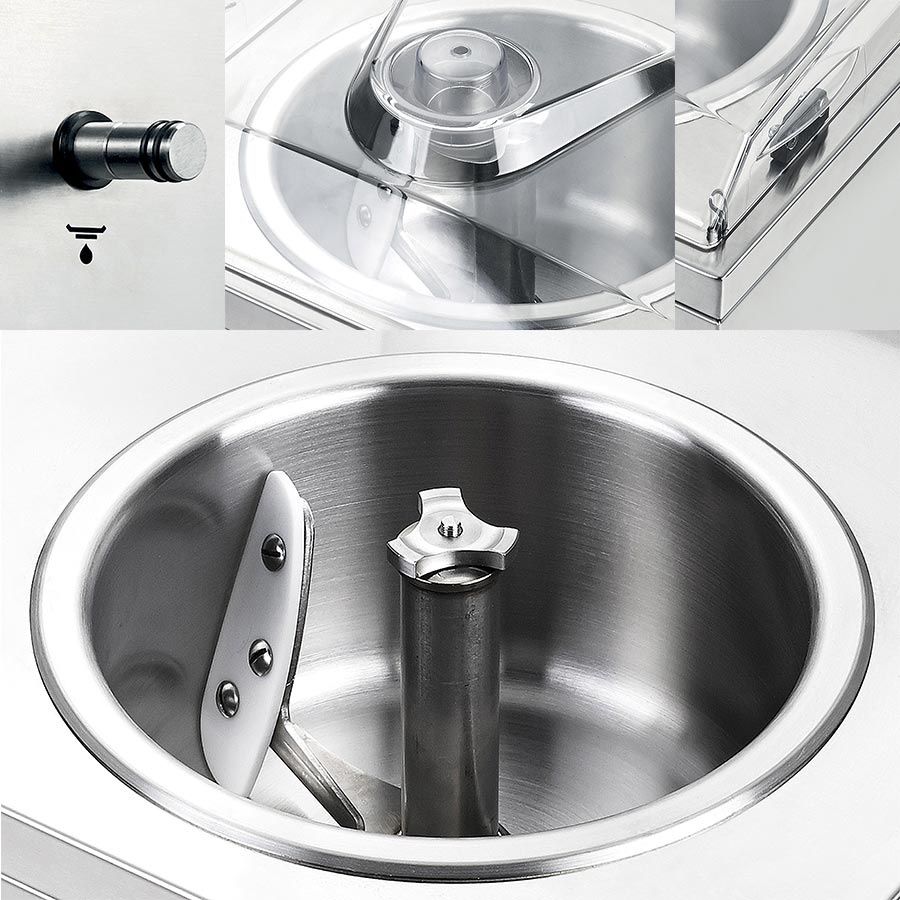 В комплект поставки входят лопатка, набор съемных насадок для лопастей и ершик для чистки сливной трубки.