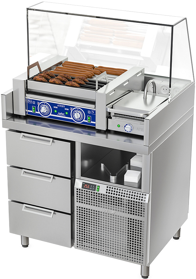 Станция для бургеров и хот-догов ATESY Бавария БХС-900.700-02-2 (без лайтбокса)