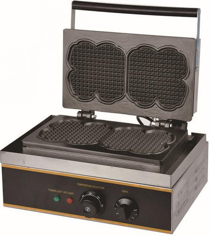 Вафельница Airhot WBF-2F FLOWER предназначается для выпекания вафель в форме цветков на предприятиях общественного питания, торговли и пищевых производствах. Электронный таймер и терморегулятор. Материал корпуса - нержавеющая сталь, материал жарочной поверхности - чугун с антипригарным покрытием.