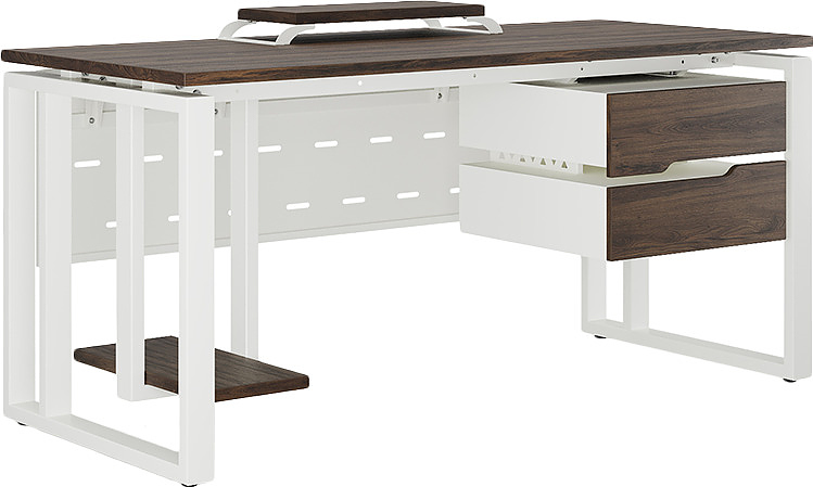 Офисный стол КОБОР O2-120/60 white/charlston используется в офисных помещениях и кабинетах руководителей. Модель оснащена О-образными опорами и усиленной вертикальной балкой. Материал столешницы - прочный ЛДСП толщиной 25 мм, усиленная снизу металлическим каркасом, материал опор - окрашенный металл.