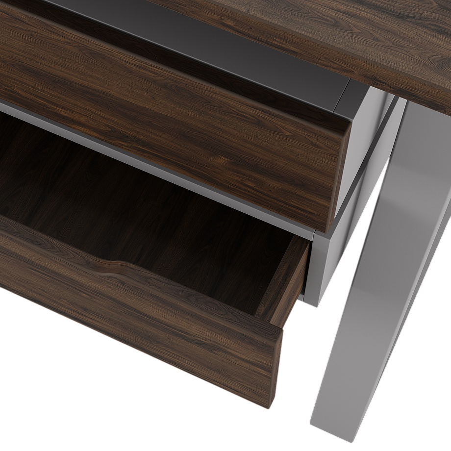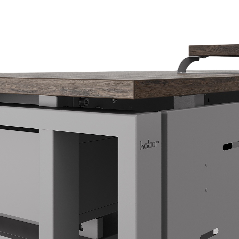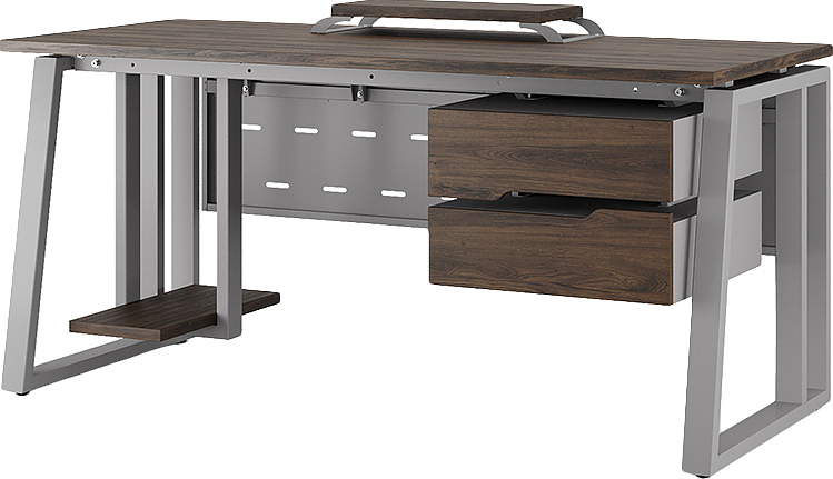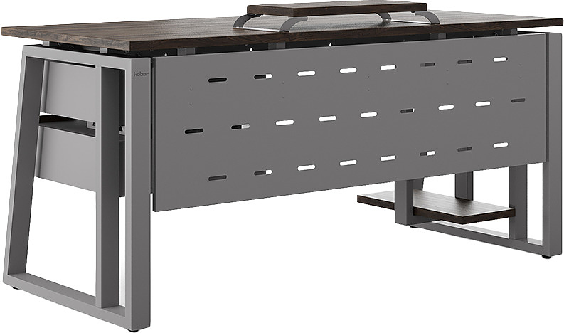 Офисный стол КОБОР TS2-120/60 aluminum/charlston используется в офисных помещениях и кабинетах руководителей. Модель оснащена опорами в форме наклонной трапеции с усиленными вертикальными балками. Материал столешницы - прочный ЛДСП толщиной 25 мм, усиленная снизу металлическим каркасом, материал опор - окрашенный металл.