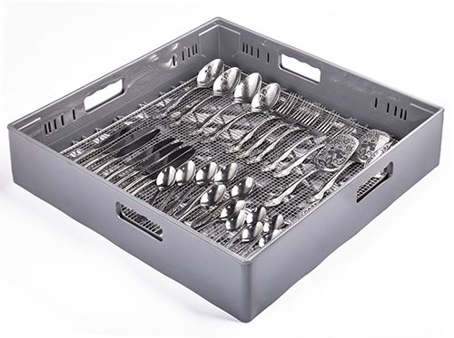 В комплект поставки входят 2 кассеты для мытья тарелок, 2 - для стаканов и чашек, 2 стакана для приборов и 2 металлические сетки для нейтральной кассеты.