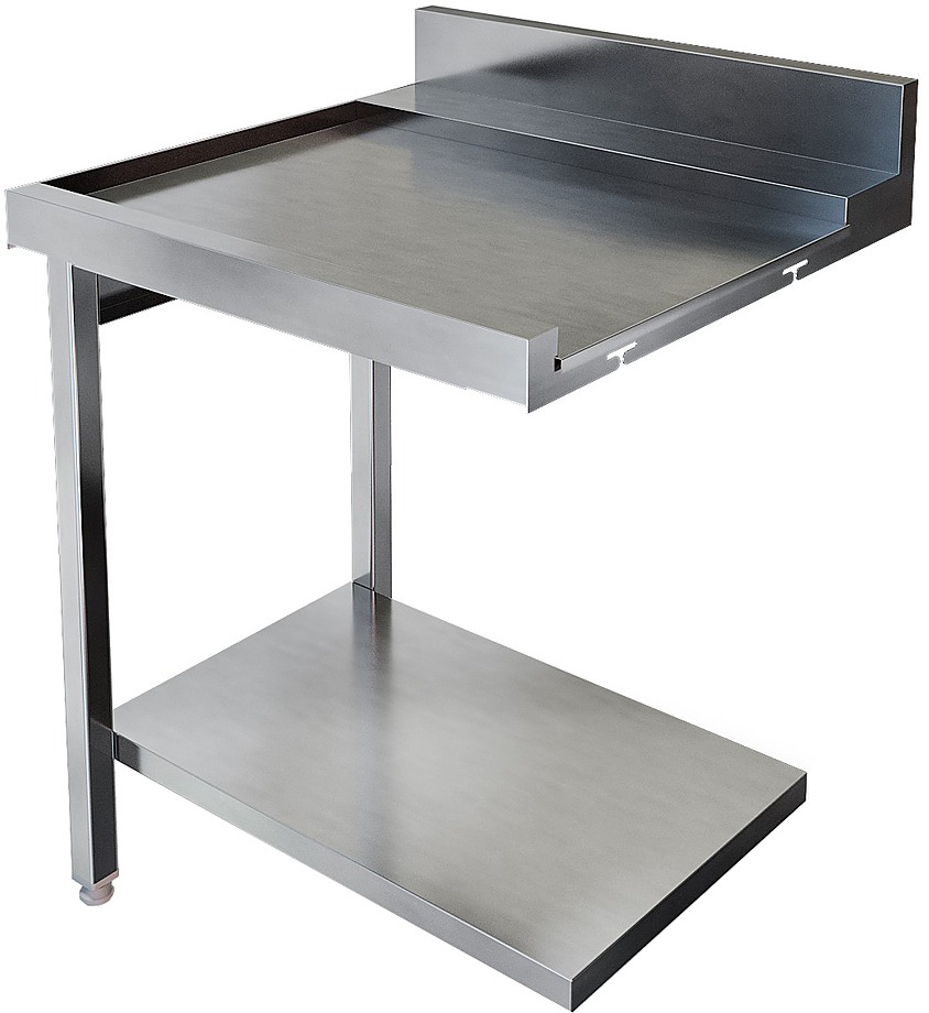 Стол для посудомоечной машины KAYMAN СПМ-112/0707 П используется на предприятиях общественного питания и торговли совместно с купольной посудомоечной машиной Apach AC800. Каркас выполнен из нержавеющего уголка AISI 304 40х40 мм, столешница - из нержавеющей стали AISI 304.