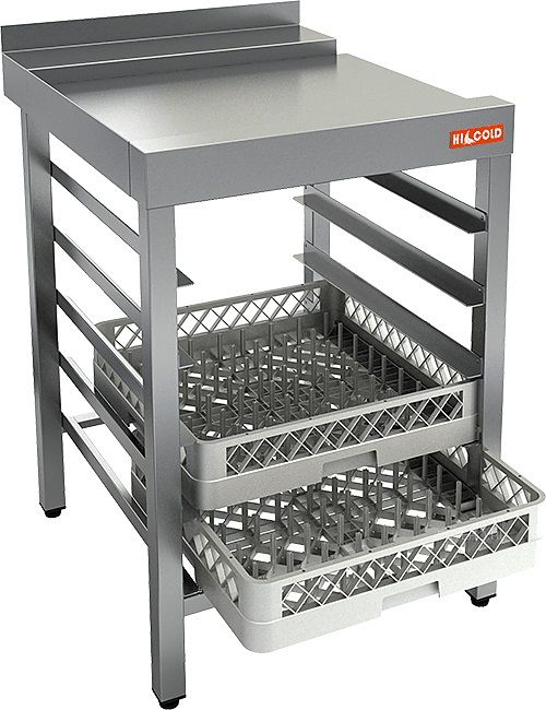 Выходной стол HICOLD НСДПМ-6/7,4БЛ предназначен для разбора, сушки и временного хранения посуды и столовых приборов после их выгрузки из посудомоечной машины на предприятиях общественного питания и торговли. Корпус и столешница выполнены из нержавеющей стали AISI 430.