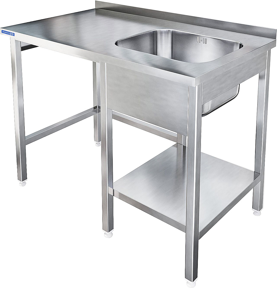Стол для посудомоечной машины KAYMAN СПМФ-121/1207 ПРАВЫЙ используется на предприятиях общественного питания и торговли совместно с фронтальной посудомоечной машиной Tatra TW.F50+DR, TW.F50+DR+DD. Каркас выполнен из нержавеющего уголка AISI 304 40х40 мм, столешница - из нержавеющей стали AISI 304. Разборная конструкция.