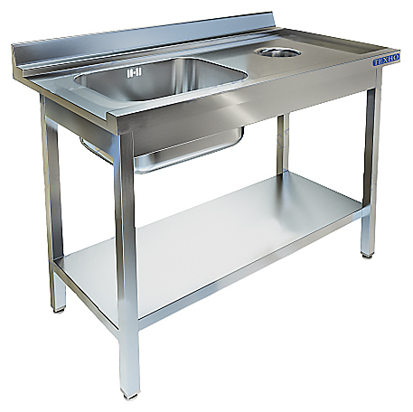 Стол Техно-ТТ СПО-533/1207П/ПравКр является приставным к посудомоечной машине и предназначается для мытья посуды и кухонного инвентаря на предприятиях общественного питания, торговли и пищевых производствах. Моечная ванна располагается слева, отверстие для сбора отходов справа, стол устанавливается справа. Ножки регулируются по высоте. Каркас - разборный. Материал каркаса - нержавеющая сталь AISI 430 (труба 40x40), материал полки, столешницы и цельнотянутой ванны - нержавеющая сталь AISI 304.