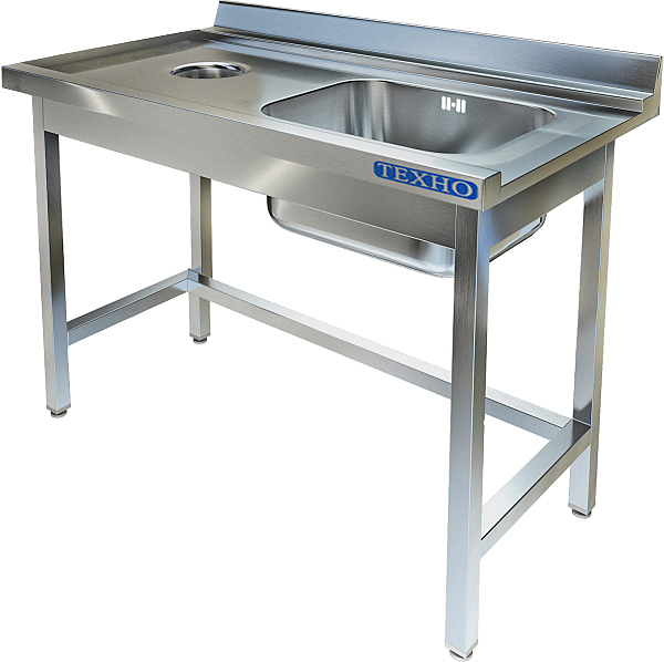 Стол Техно-ТТ СПО-522/1207П/ПравКр является приставным к посудомоечной машине и предназначается для мытья посуды и кухонного инвентаря на предприятиях общественного питания, торговли и пищевых производствах. Моечная ванна располагается слева, отверстие для сбора отходов справа, стол устанавливается справа. Ножки регулируются по высоте. Каркас - разборный. Материал изготовления - нержавеющая сталь AISI 304 (каркас - труба 40x40, обвязка - труба 40x20).