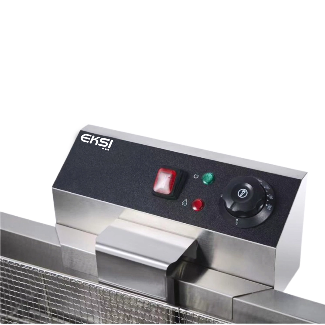 Чебуречница EKSI HEC-32 используется на предприятиях общественного питания, торговли и пищевых производствах для приготовления в большом количестве горячего масла различных блюд. Модель оснащена электронным управлением, регулировкой температуры, индикатором нагрева и ТЭНами. Материал изделия - высококачественная нержавеющая сталь.