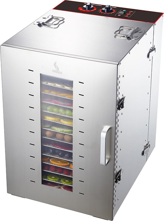 Дегидратор Airhot FD-16G предназначается для сушки овощей, грибов, фруктов и ягод на предприятиях общественного питания, торговли, пищевых производствах и в домашних условиях. Управление при помощи электромеханической панели. Стеклянная дверь позволяет следить за ходом приготовления продукта. Материал корпуса - нержавеющая сталь.