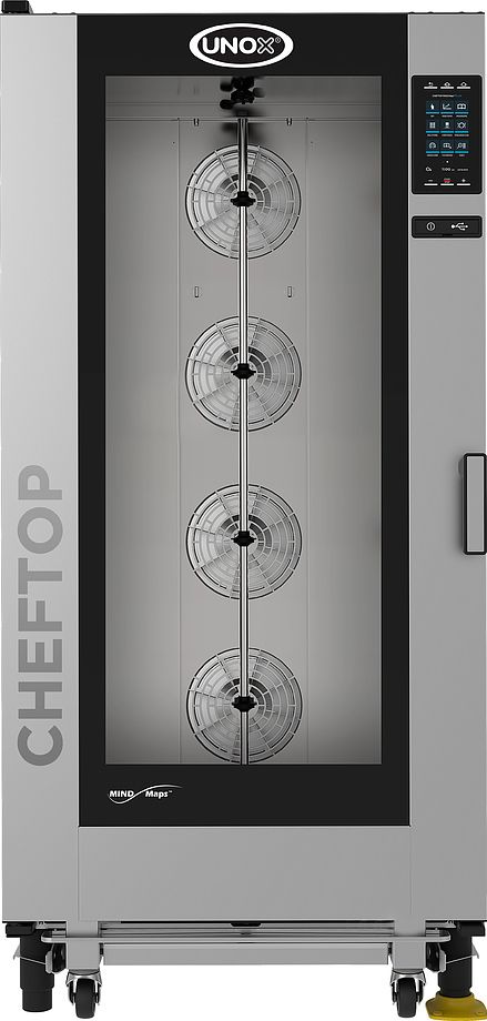 Пароконвектомат UNOX XEVC-2011-EPR серии ChefTop MIND.Maps предназначен для приготовления различных блюд, выпечки хлебобулочных и кондитерских изделий на предприятиях общественного питания и торговли, в пекарнях и кондитерских. Модель оснащена подсветкой посредством внешней LED-лампы и C-образными с зубчатыми нишами направляющими. Внутреннее открывающееся стекло облегчают чистку и обеспечивают максимальную гигиену. Камера с закругленными углами выполнена из нержавеющей стали AISI 304, направляющие - из профилированной стали, дверной замок - из высокопрочного самосмазывающегося технополимера, внутренний штифт дверной ручки - из углеродного волокна.