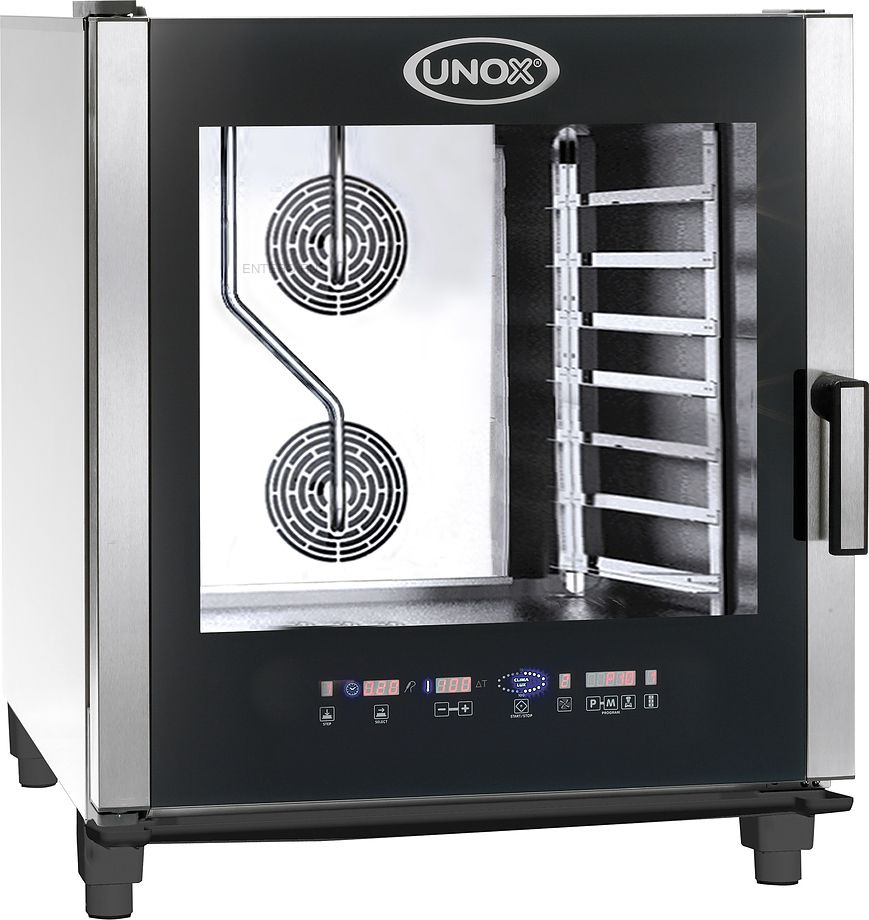 Пароконвектомат Unox XVC 505 E – электрическая модель со средним объёмом загрузки, позволяющая готовить на 7 уровнях, которые рассчитаны под гастроёмкости GN1/1. При этом относительно небольшие габариты и экологичная система теплоизоляции позволяют производить установку и эксплуатацию даже в не очень больших кухнях. Такой вариант идеально подойдет для небольших частных ресторанов или заведений быстрого питания. Процесс производства пищи в пароконвектомате значительно улучшает качество блюд – тем более что инжекторный парогенератор работает в диапазоне от 48 до 130°C, обеспечивая бережную обработку продуктов.