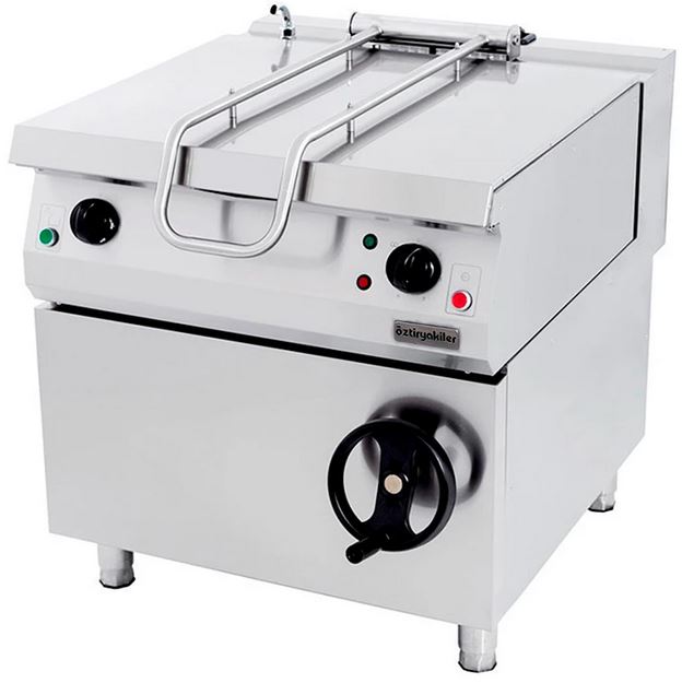 Опрокидывающая сковорода OZTI OTG 100 серии 900 используется на предприятии общественного питания, торговли и пищевых производствах для жарки, тушения, пассерования, припускания овощей, мяса, рыбы и других продуктов питания. Модель оснащена механическим управлением, газ-контролем, пьезоподжигом, защитой от перегрева, двухслойной крышкой, наклоном с помощью колеса, электромагнитным клапаном, хромированным вертлюжным краном и ножками. Материал изделия - высококачественная нержавеющая сталь.